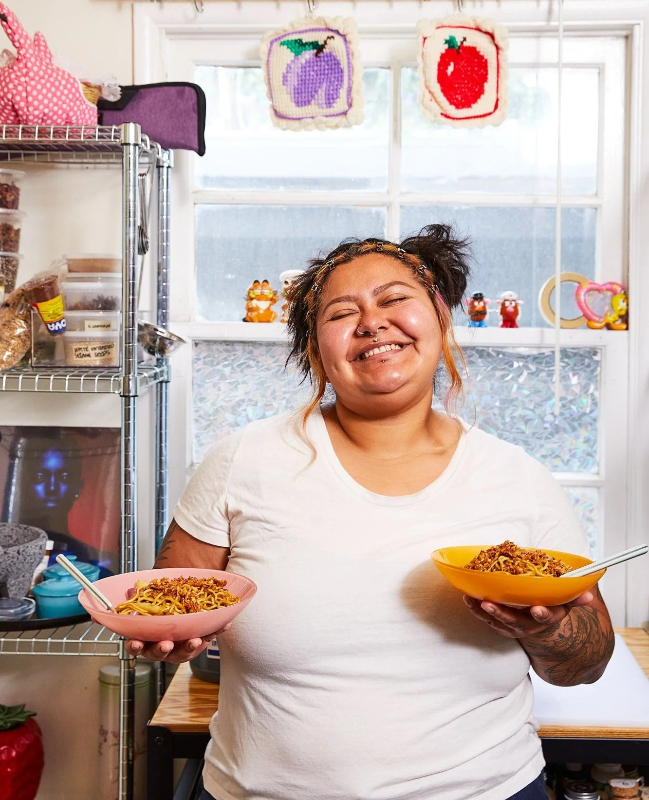 In mid-April, I met with chef Agua in their apartment kitchen — a space filled to the brim with dried and fresh ingredients, literature, records, figurines, art, keepsakes and family photos.